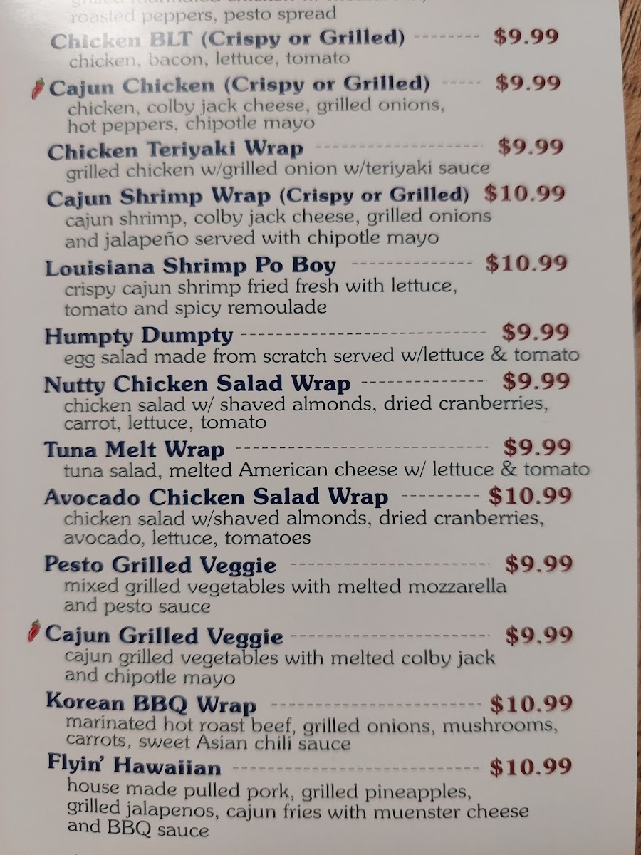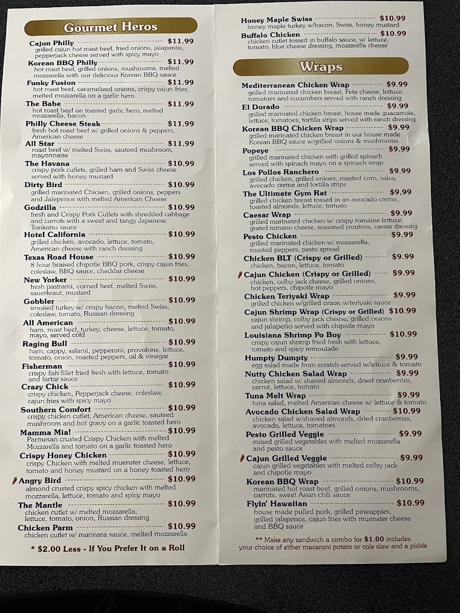 Guests will find a range of items including classic sandwiches like the Philly Cheese Steak and roast beef with mozzarella in brown gravy, alongside global-inspired dishes such as Korean BBQ and gyro bowls. Freshly crafted salads, like the Cobb with crispy chicken, add a lighter alternative without sacrificing flavor. The sides allow for easy customization, from spicy mayo to Cajun frites, fitting perfectly with the casual and welcoming atmosphere.